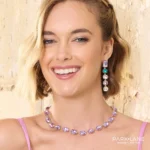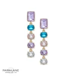 - Perfectos para eventos especiales y veladas elegantes combinación de aguamarina, lavanda y cristales transparentes.