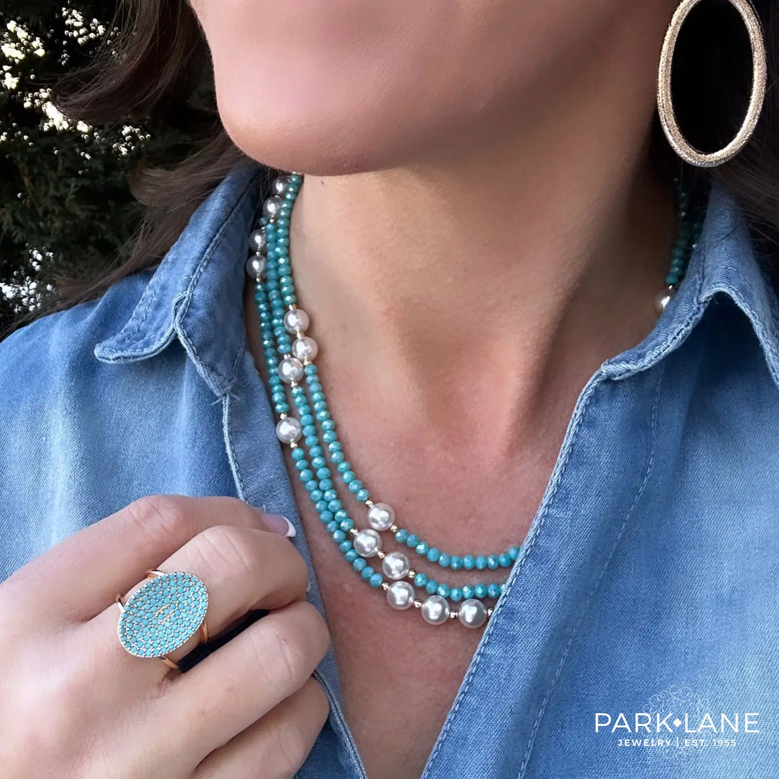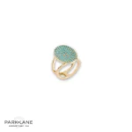 - Esta belleza tiene un acabado dorado y está adornada con una esfera de circonitas color aguamarina.