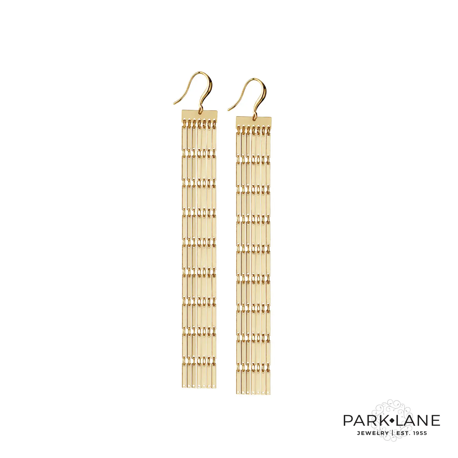 Arete con un diseño de cadena facetada ultra larga que atrapa la luz con cada movimiento