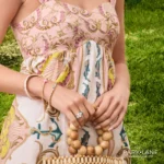 • Toques de cristales abstractos en transparente y rosa