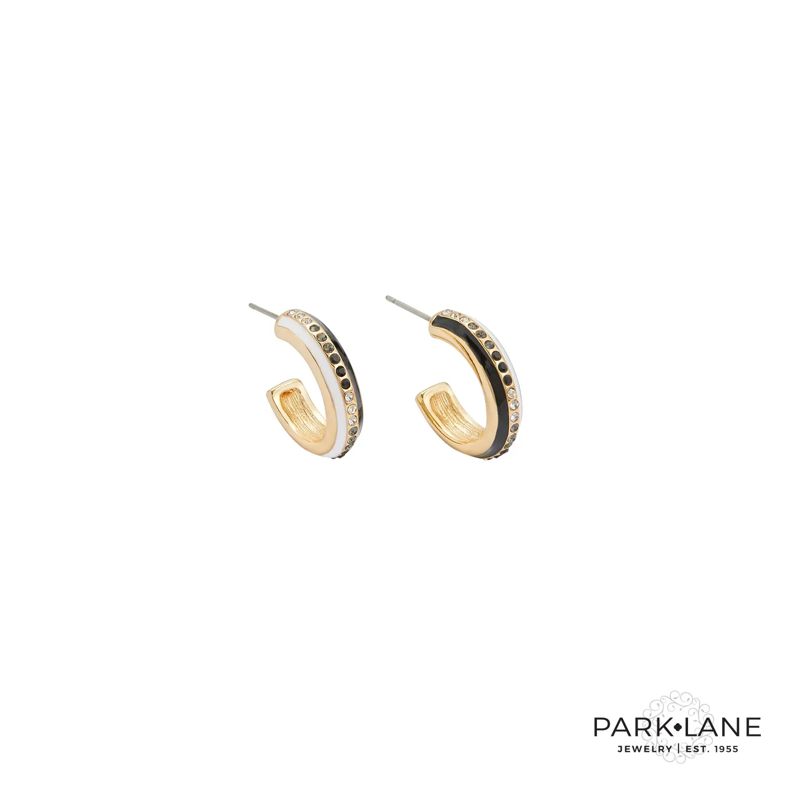 Impresionantes aretes de aro con un diseño de pintado a mano en un llamativo blanco y negro