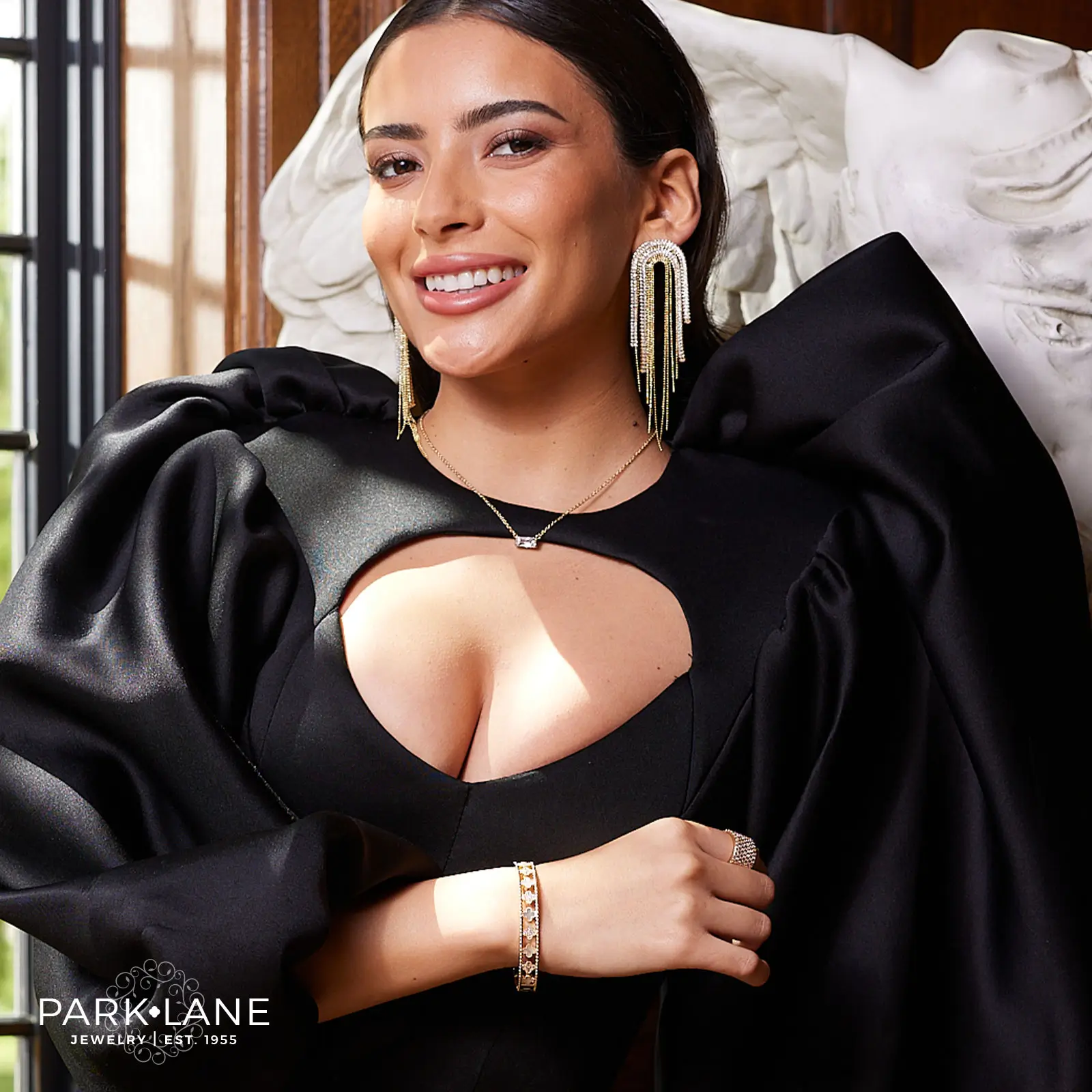 • Disponible en oro con circonita cúbica transparente o plata con circonita cúbica color aguamarina
